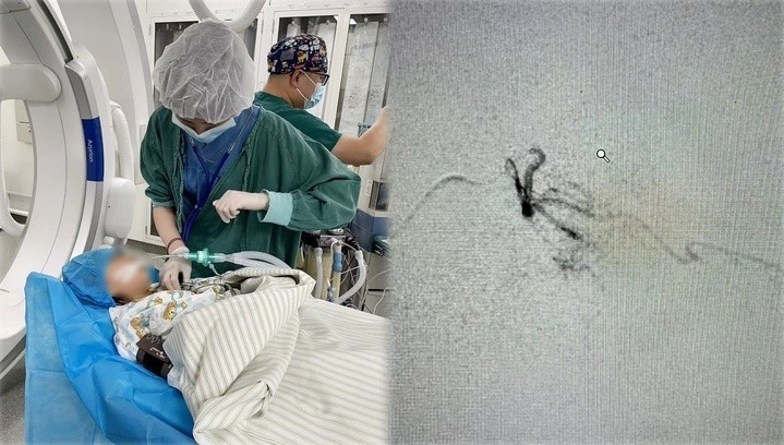 (荔枝新闻讯 通讯员/李赟颉、戴宇菲)近期,江苏省人民医院(南京医科大学第一附属医院、江苏省妇幼保健院)介入放射科、眼科与儿科等多学科联合,为患视网膜母细胞瘤的5岁女孩小欣(化名)成功完成眼动脉超选择介入化疗术,在精准治疗与保眼目标之间取得平衡,小欣的肿瘤缩小,眼球也得以保留。5岁女孩确诊视网膜母细胞瘤晚期,抗癌还是保眼?小欣的母亲半个月前发现孩子右眼瞳孔在暗处出现异常反光,出现了类似“猫眼”的白瞳症,且视力完全丧失,眼科主任医师袁松涛经眼底检查、超声及影像学诊断为视网膜母细胞瘤,已经发展到D期(国际分期标准),需立即干预以防止肿瘤转移。视网膜母细胞瘤是婴幼儿最常见的眼内恶性肿瘤,95%发生于3岁以下儿童,但偶见5岁以上病例。传统治疗中,晚期患儿常需摘除眼球,这将导致终身残疾。江苏省人民医院儿科副主任陆彬彬在儿童肿瘤领域有着丰富的临床经验,他表示:“小欣的肿瘤范围较大,但尚未侵犯视神经及颅内。我们的目标是尽可能通过介入化疗联合静脉化疗控制肿瘤,保留眼球功能。”精准操作挑战难关,眼动脉超选择介入化疗效果显著为了实现抗癌保眼的目标,贾振宇副主任医师带领介入放射科团队为小欣制定了“眼动脉超选择介入化疗”方案。手术中,医生经股动脉穿刺,以微导管超选择至眼动脉内,直接灌注化疗药物至肿瘤部位。该技术可使局部药物浓度达到全身化疗的10倍以上,同时减少全身毒副作用。但难点在于眼动脉的精细操作,尤其是儿童血管更细、变异更多,于是治疗团队借助高清影像进行导航,配合球囊阻断技术,最终成功确保药物精准注入肿瘤部位。